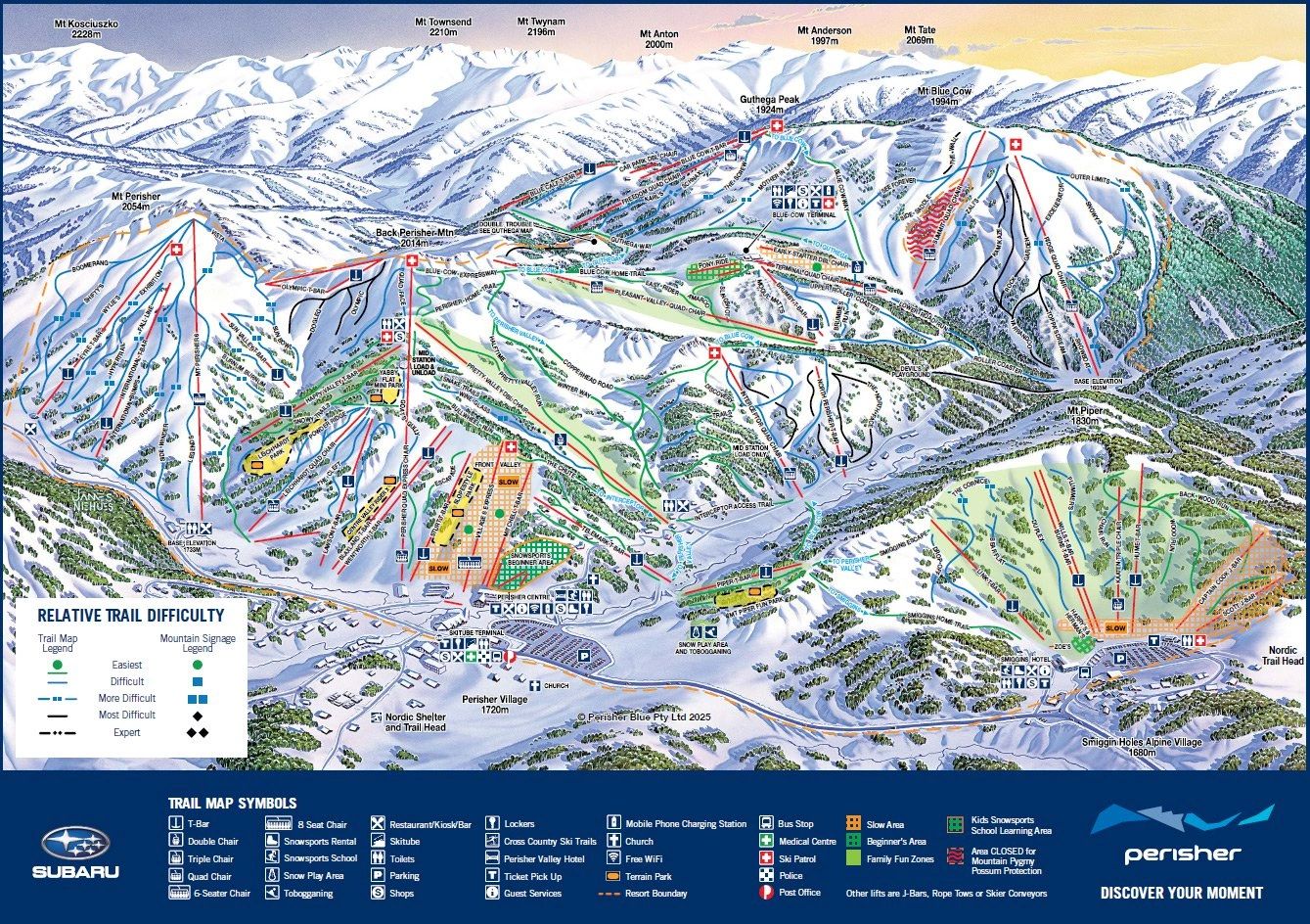 Perisher is the largest ski resort in the Southern Hemisphere, with four picturesque resort areas in one and 245 hectares of terrain to ride.